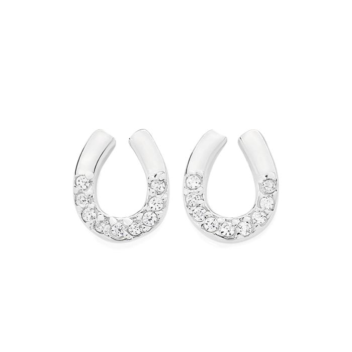 Sterling Silver CZ Horsehoe Stud Earrings 1615018