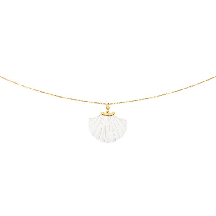 Italian Made 9ct Gold 45cm Mother of Pearl Fan trace Necklet - Approximate Dimensions 22x17mm Mother of Pearl.