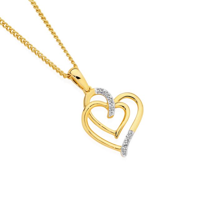 9ct Gold Diamond Double Linked Heart Pendant. Size = Approx. 22mm x14mm Including Bale.
