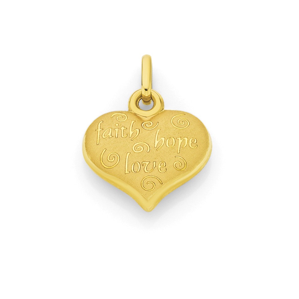 Italian Made 9ct Gold Faith, Hope and Love Satin Finish Hollow Heart Charm - Approximate Dimensions 13mm x 12mm including Bale
