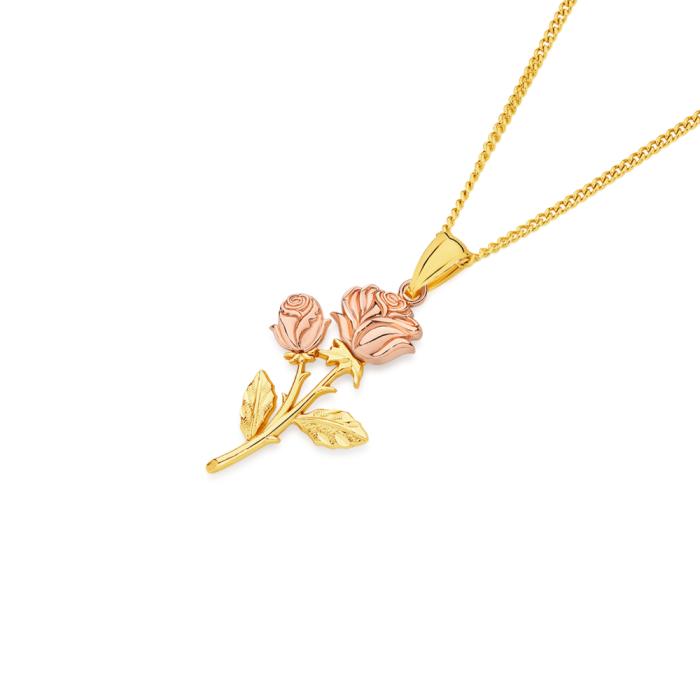 9ct Gold Two Tone Roses Pendant. Approximate Dimensions - 16mm Width x 32mm Height including bail.