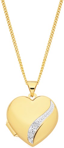 9ct Two Tone Gold Diamond Heart Locket