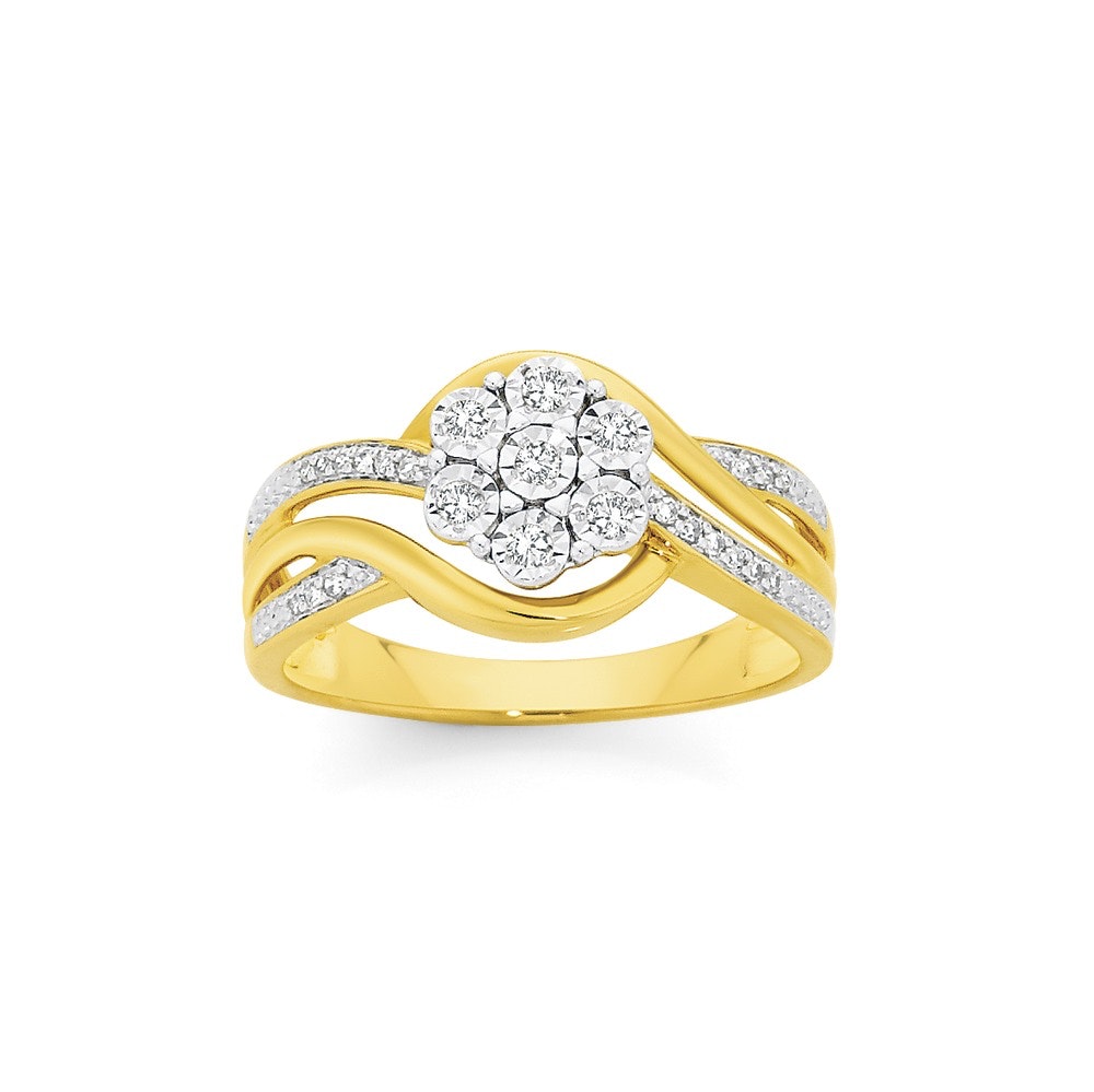 9ct Gold Diamond Miracle Set Flower Cluster Wrap Ring Total Diamond Weight =.18ct