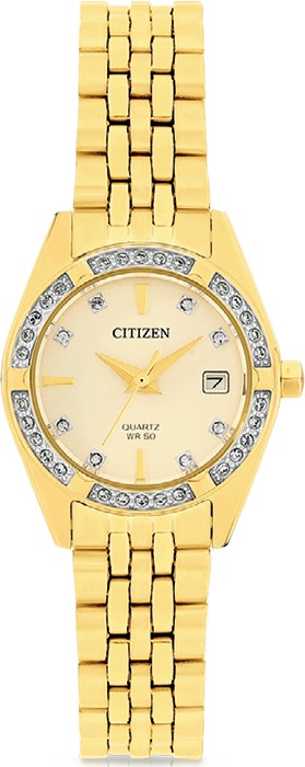 Citizen ladies, gold tone, crystal set, 50m water resistant watch 5079053