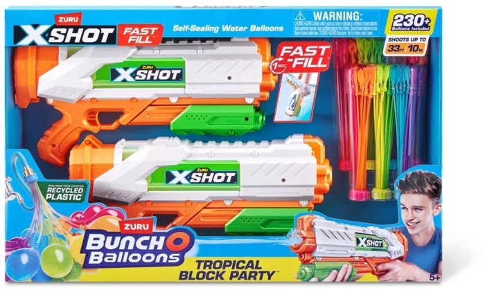 Zuru X-Shot Bunch O Balloons Tropical Block Party Blaster and Self-Sealing Water Balloons Set