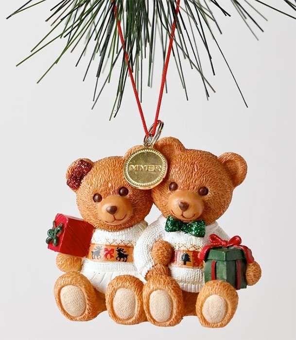 Myer Giftorium Resin 2025 Christmas Twins Charity Bear Ornament 9cm in Red/Green