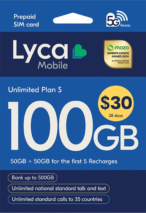 Includes first recharge applied on activation. All for personal use in AU only. New services only, not for recharge purposes. All recharges refer to standard plan price. Full T&Cs apply.