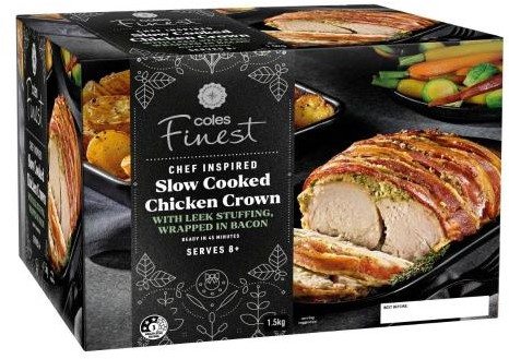 Coles Finest Slow Cooked Chicken Crown with a Leek Stuffing and Wrapped in Bacon 1.5kg