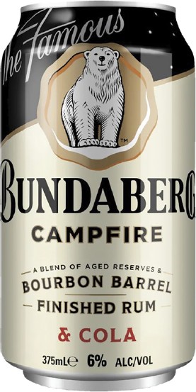 The fire is crackling now. Late afternoon light bounces around like the convo you and your mates are having. Real mates. A can of Bundaberg Campfire and Cola sits ice cold in your esky just itching to be fished out. This one tastes different cause it's made different - crafted from our finest aged reserves blended with rum allowed to rest in Bourbon barrels then mixed with our finest cola. You can thank those Bourbon barrels for the smooth, mellow taste and perfect balance of toasted caramel and vanilla.