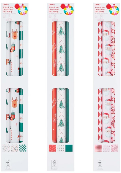 3 Pack 4m Christmas Gift Wrap - Assorted