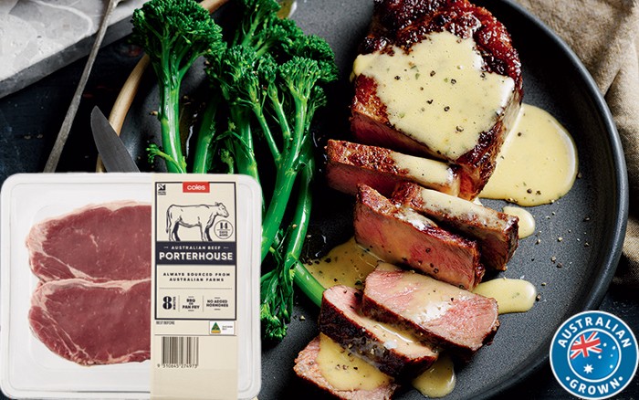 Coles Australian No Added Hormones Beef Porterhouse Steak 2 Pack 450g