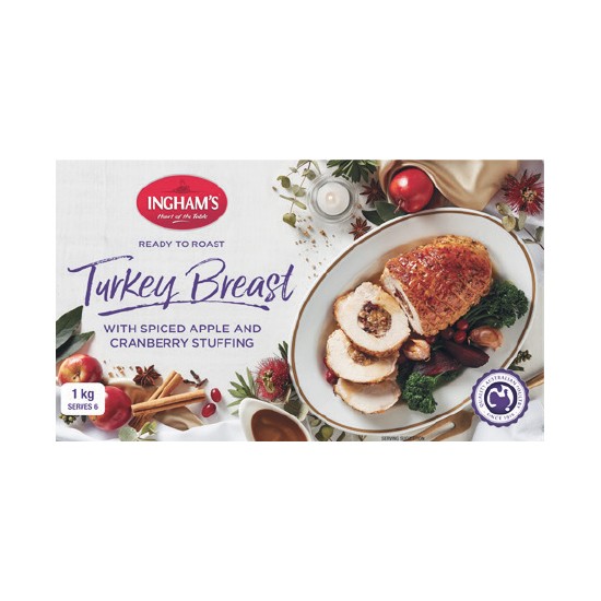 Ingham’s Turkey Breast Roast with Spiced Apple & Cranberry Stuffing 1 kg – From the Freezer