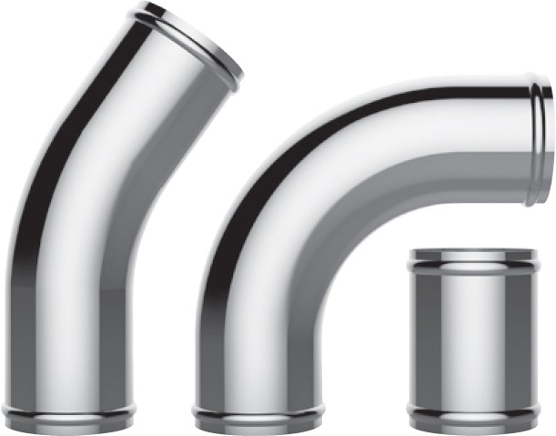 Suit 76mm, 63mm or 57mm hose. 45 / 90 degree mandrel bends, 100mm or 200mm straight lengths all with bead rolled ends.