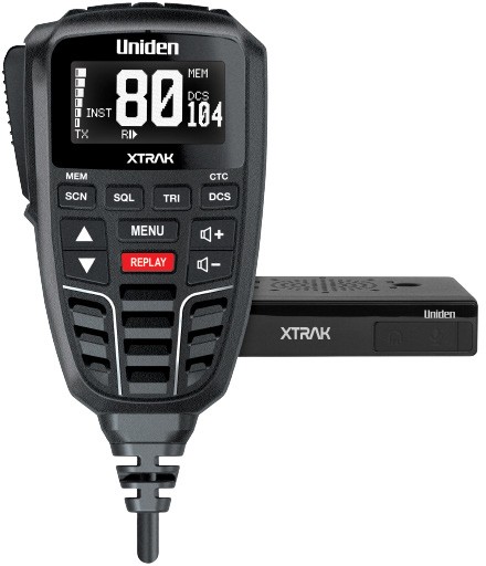 Large anti-glare OLED display with dimmer. Waterproof. 10 level squelch adjust. Remote speaker microphone with magnetic mount.