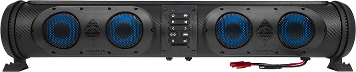 8 waterproof, dustproof, and dirtproof speakers. Perfect for your 4WD, ATV/UTV and boat. Rear facing LED light bar. Pair up to 50 soundbars via ECOCAST.