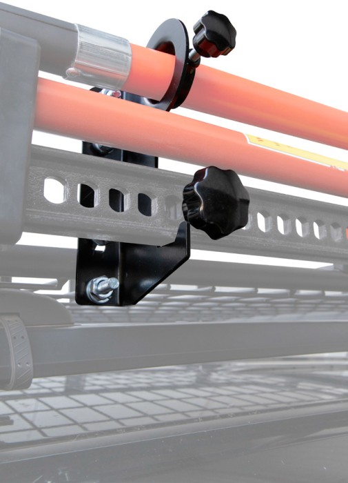 Securely holds your high lift jack & shovel. Universal fitment onto most aftermarket roof baskets.