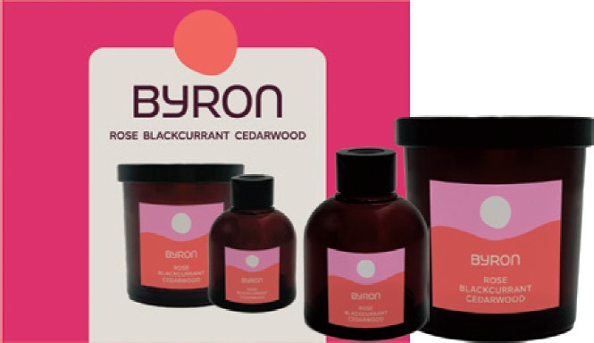 Byron Rose, Blackcurrant & Cedarwood Candle & Reed Diffuser Gift 2 Piece Set