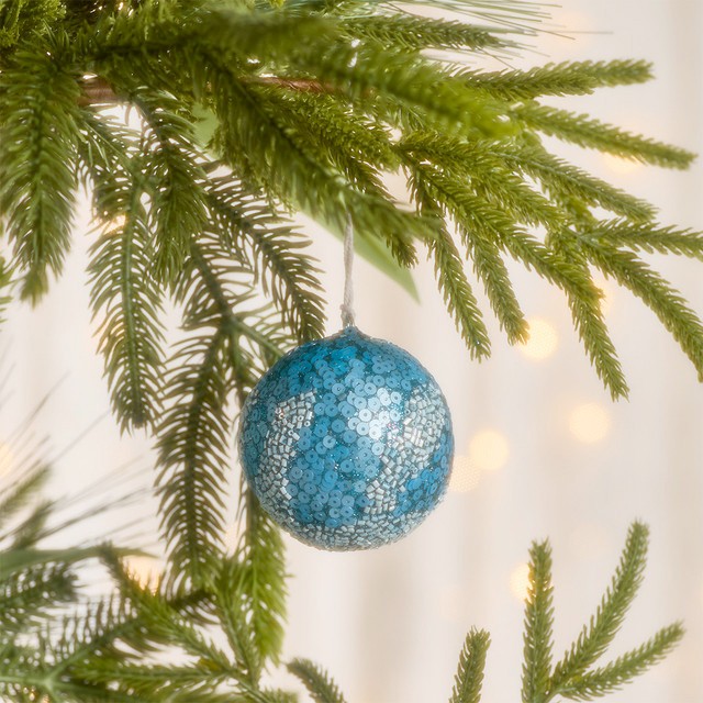 Christmas Merci Blue Glitter Christmas Bauble by Pillow Talk