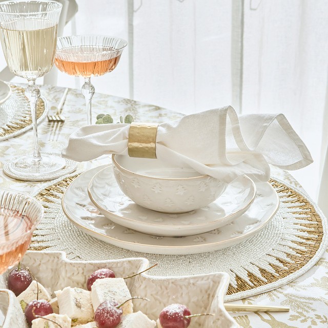 Christmas Tree Gold Rim White Wash Dinnerware by Pillow Talk