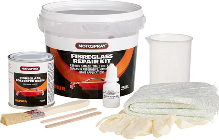 Complete kit to repair large holes & cracks for automotive & marine applications. Repairs are waterproof, weather resistant & rotproof suitable for use on fibreglass, metal, timber & masonry.