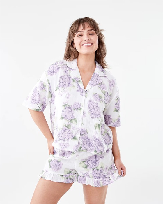 Short Sleeve Top and Shorts Double Cloth Frill Boxy Pyjama Set