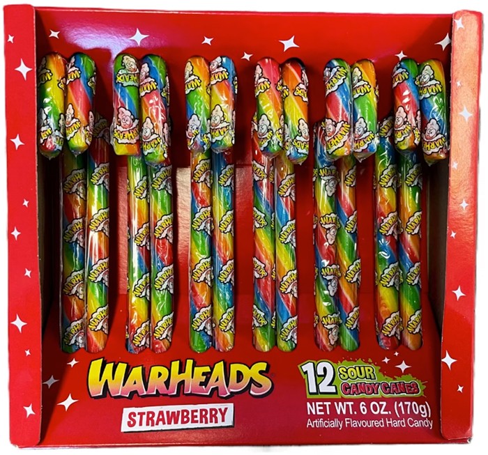 12 Pack Warheads Strawberry Sour Candy Canes 170g
