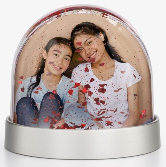 • Available in snow and heart glitter• Show a different image on each side