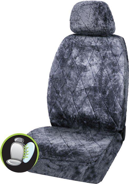 Genuine sheepskin front with acrylic fur backing. Cool in summer, warm in winter for all year comfort. Suitable for front seats with side impact airbags.