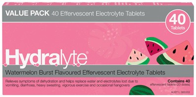 Hydralyte Effervescent Electrolyte Tablets Watermelon Burst 40 Pack