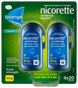 Nicorette Cooldrops 4mg Extra Strength Icy Mint 4 x 20 Lozenges