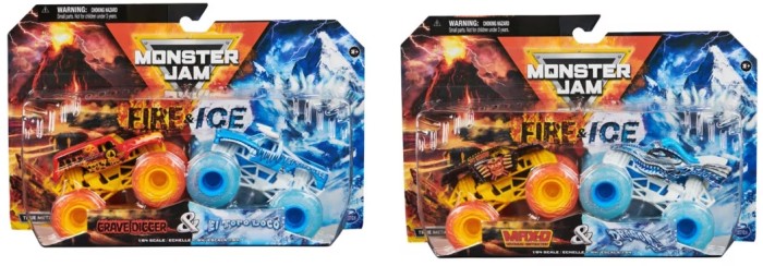 2 Pack Monster Jam 1:64 Scale True Metal Fire and Ice Trucks - Assorted