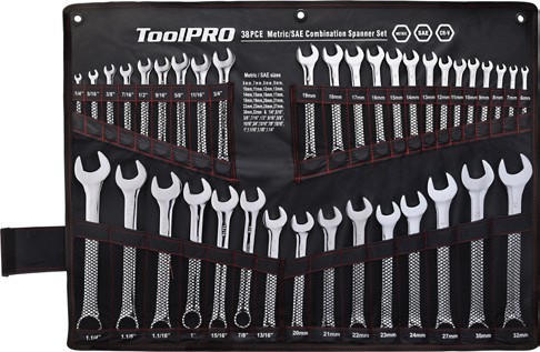 Includes sizes: 6-24, 27, 30 & 32mm & 1/4 - 1 1/4”.Durable chrome vanadium steel (Cr-V) & stored in a convenient tool roll.