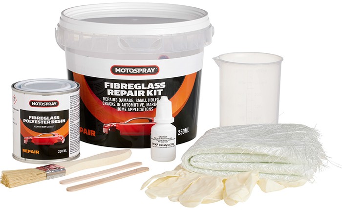 Complete kit to repair large holes & cracks for automotive & marine applications. Repairs are waterproof, weather resistant & rotproof suitable for use on fibreglass, metal, timber & masonry.
