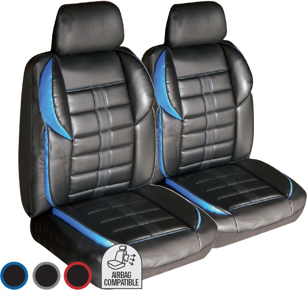 Modern carbon fibre leather look. Six padded cushions for extra driving comfort. Water resistant and easy to wipe clean.