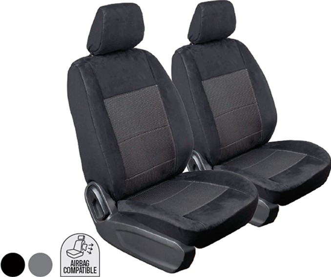 Universal fit. Premium micro suede fabric with modern woven centre panel. Includes rear map pocket.