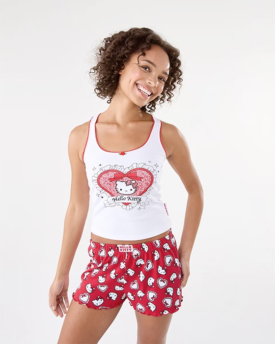 Hello Kitty License Sleeveless Rib Lace Trim Tank and Shorts Pyjama Set