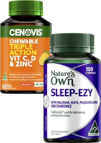 Cenovis Chewable Triple Action Vitamin C, D & Zinc Tablets 60 Pack or Nature's Own Sleep-Ezy Capsules 100 Pack