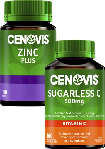 Cenovis Sugarless C 500mg Chewable Tablets 160 Pack or Zinc Plus Tablets 150 Pack