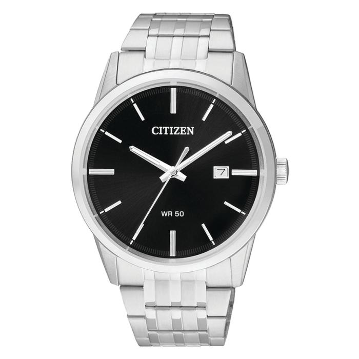 Highlighting the epitome of minimalist sophistication, this men's Citizen watch embodies understated elegance. With a sleek black dial exuding subtle design, it elevates any ensemble with effortless charm. Boasting a discreet date display at 3 o'clock and water resistance of up to 50 meters, this timepiece seamlessly combines style with functionality.