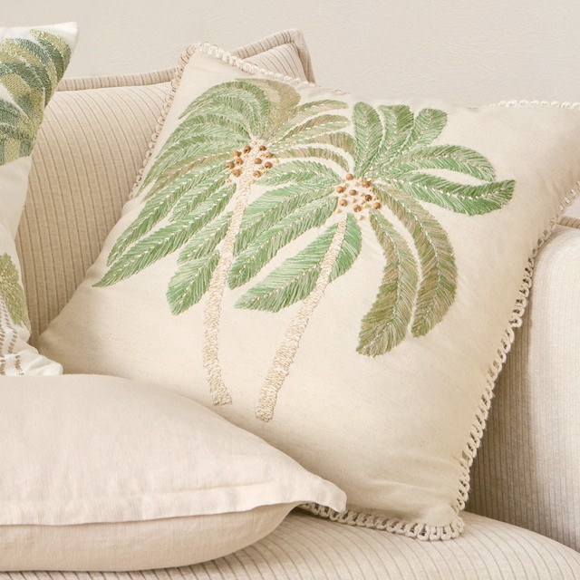 Hula Beaded Tropical Palm Square Cushion by M.U.S.E.