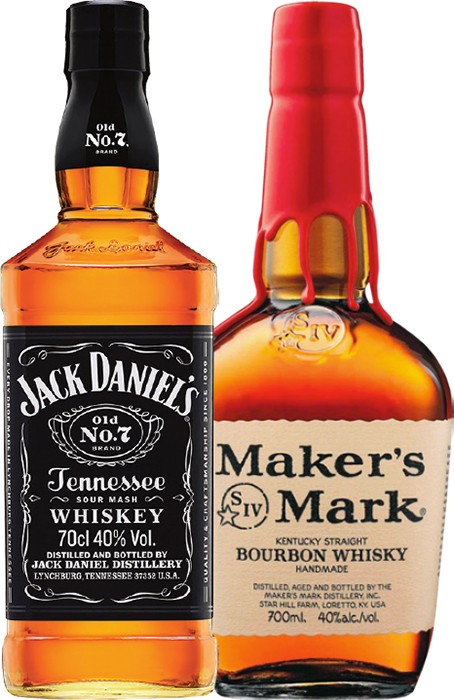 Jack Daniel’s Old No. 7 Whiskey or Maker’s Mark Bourbon 700mL