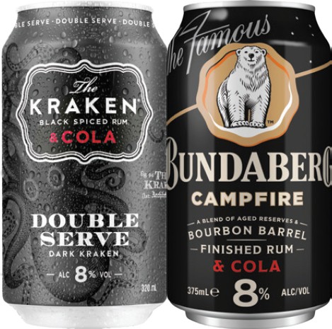 Kraken Spiced Rum & Cola Double Serve 8% or Bundaberg Campfire Rum & Cola 8% 4 Pack
