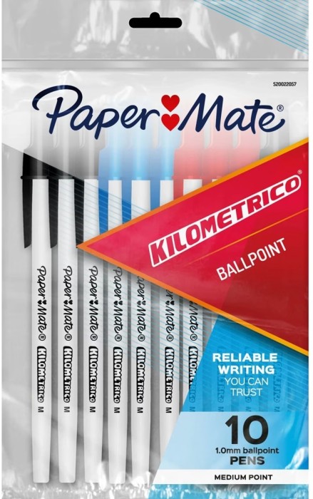 10 Pack Paper Mate Kilometrico Ballpoint Pens - Multi Colour