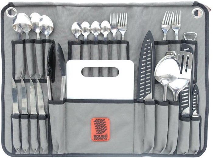 Rough Country Canvas Cutlery Roll - 24 Piece Stainless Steel