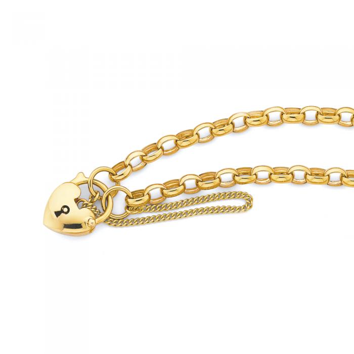 Solid 9ct Gold 19cm Solid Oval Belcher Bracelet with Keyhole Puff Heart Padlock Approximate Dimensions 14mm Padlock and 4.5mm Link Width.