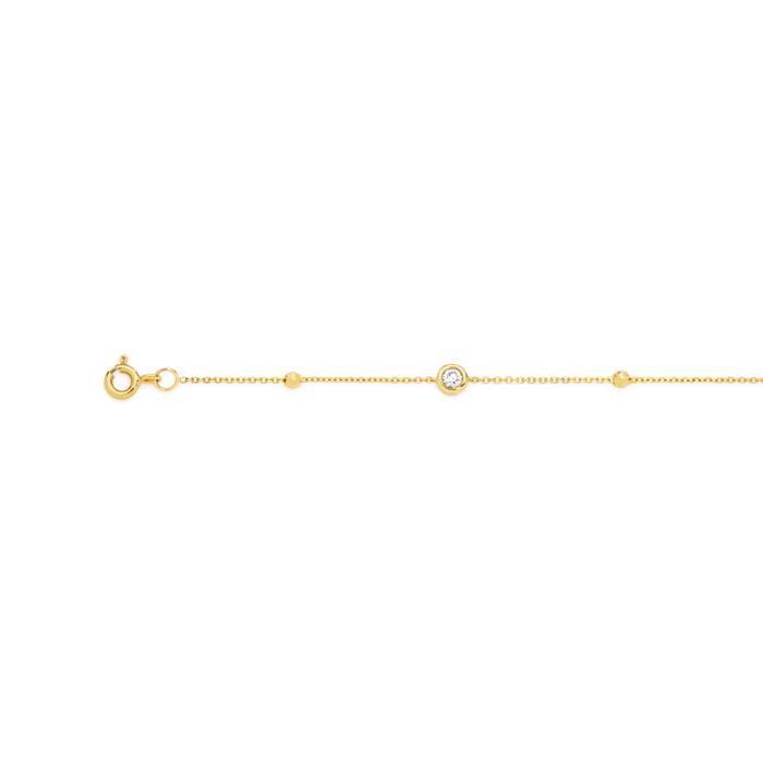 Alora 9ct Gold Lab Grown Diamond Three Bezel Set / Beads Bracelet Total Weight = .30ct. Length = 18.5cm + 1cm extension.