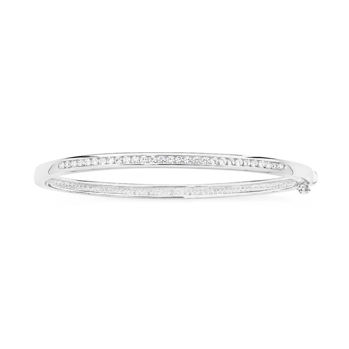 Sterling Silver Channel-Set CZ 65x55mm Oval Hinge Bangle1919029