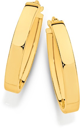 European Made 9ct Gold Square Tube Oval Hoop Earrings - Approximate Dimensions 4mm Width, 17x20mm Inner Diameter.