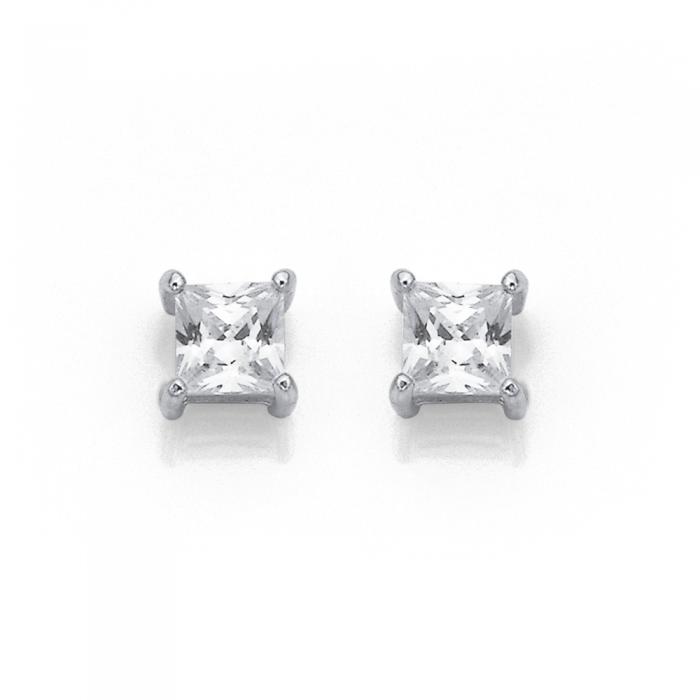 Sterling Silver 4mm CZ Square Stud Earrings1601224