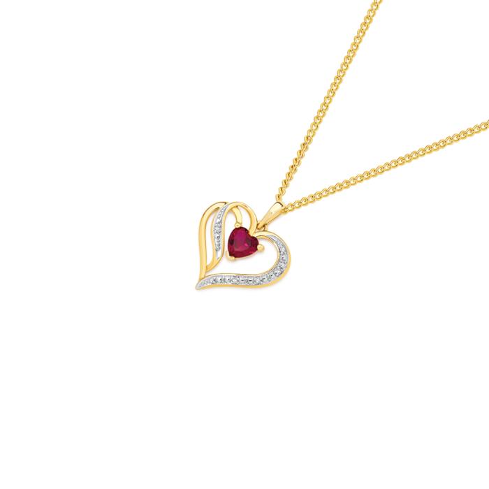 9ct Gold Created Ruby & Diamond Heart Pendant
